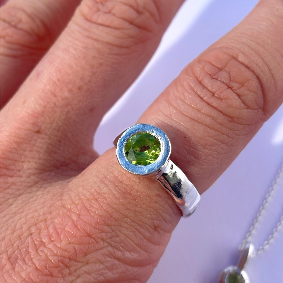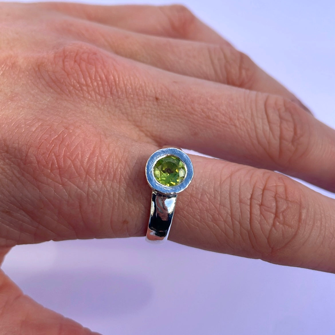A beautiful 5mm peridot, set in solid 925 sterling silver
