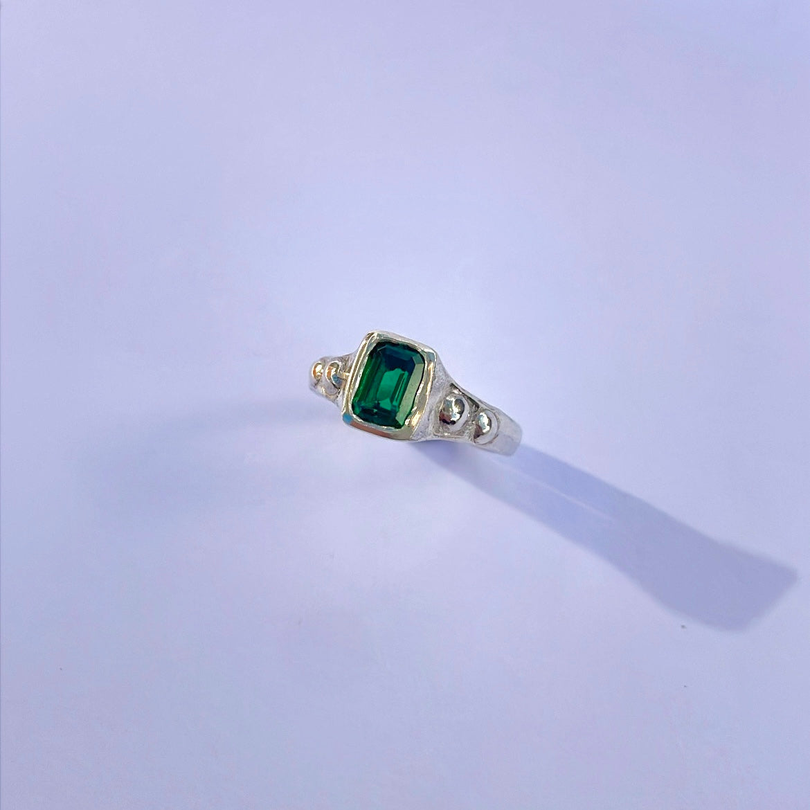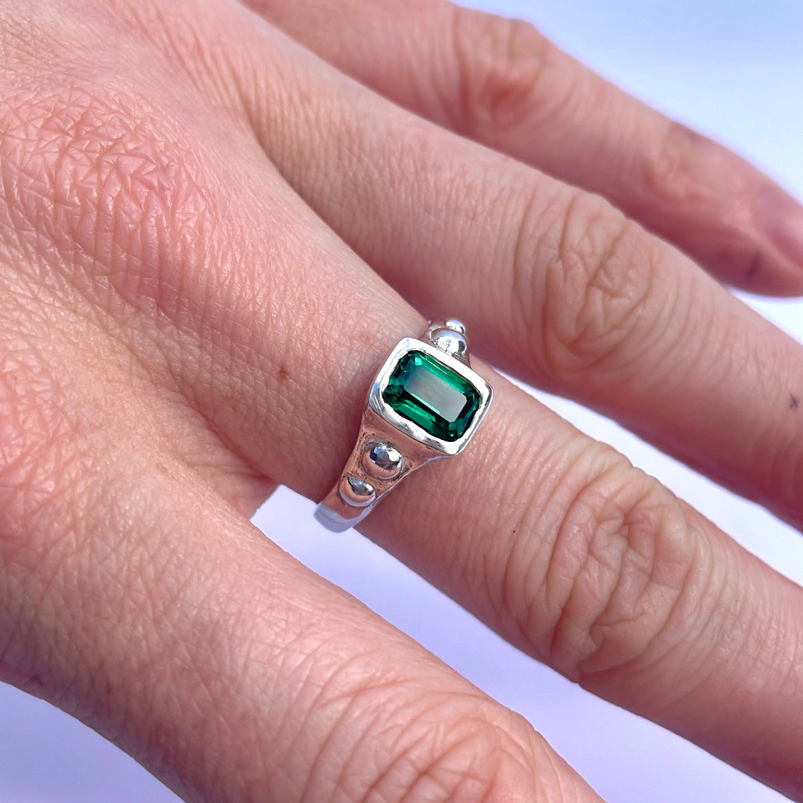 A 7x5mm hydrothermal emerald in 925 sterling silver