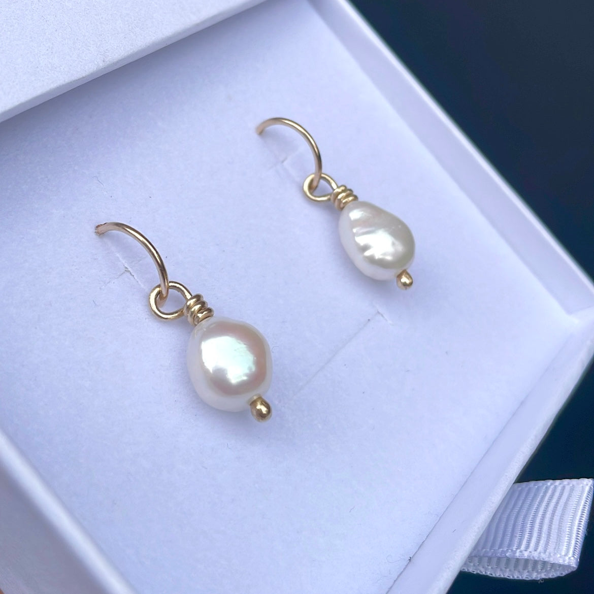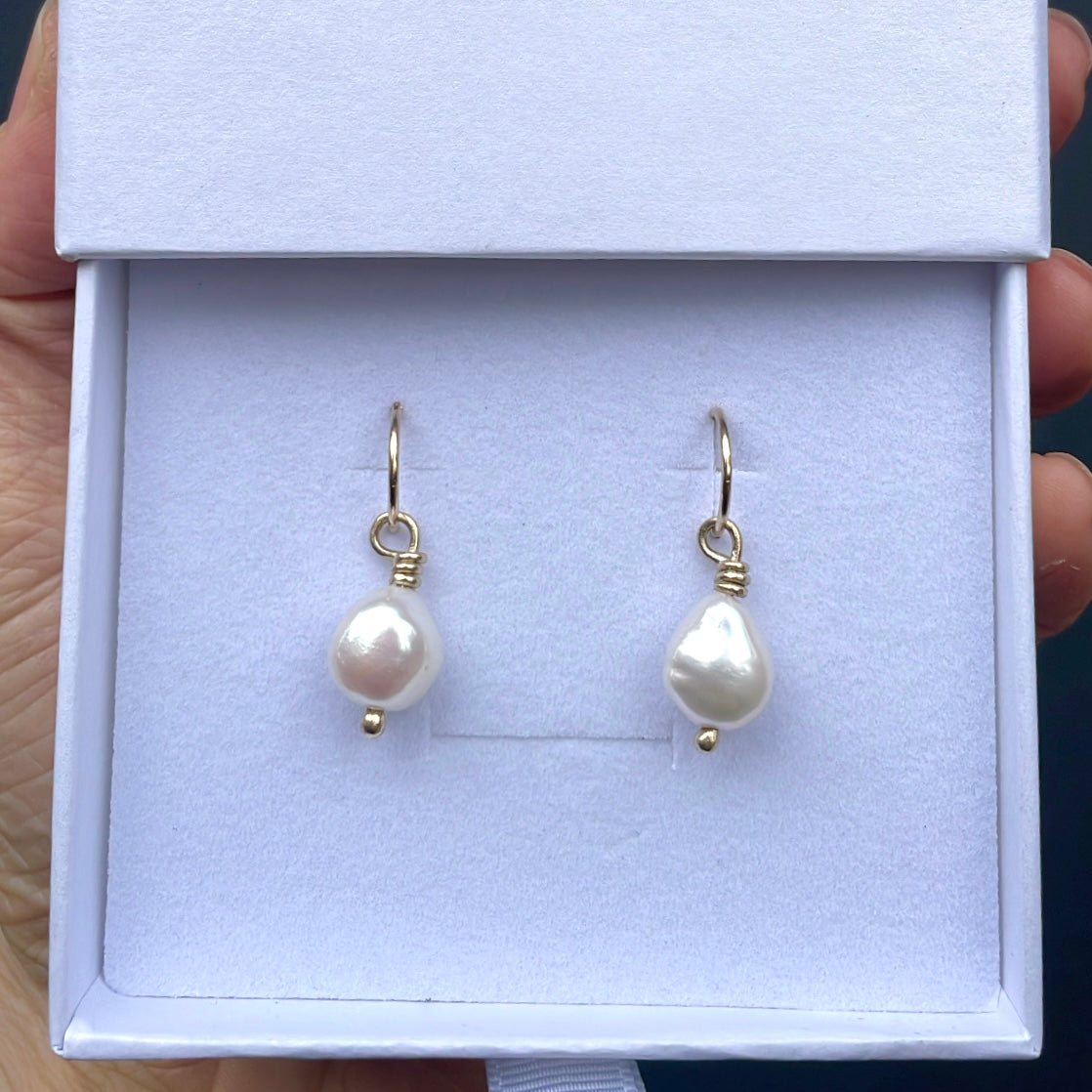 Freshwater keshi pearls in 9ct gold, on 10mm solid 9ct gold sleepers.