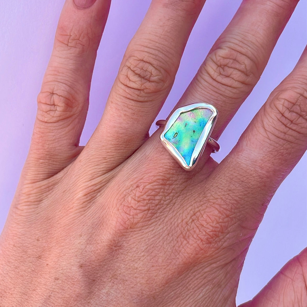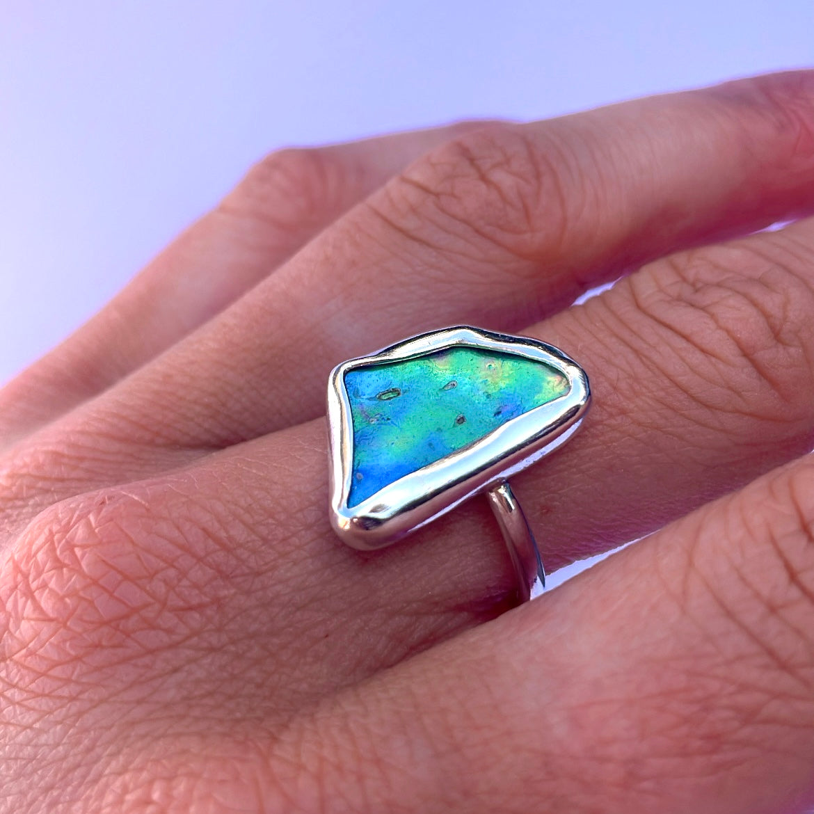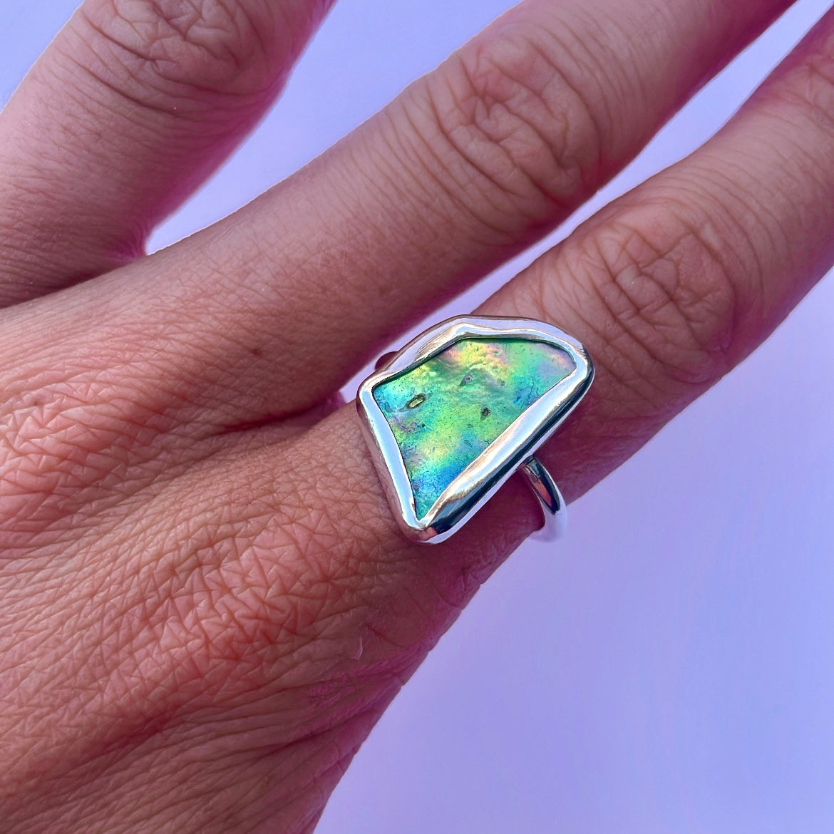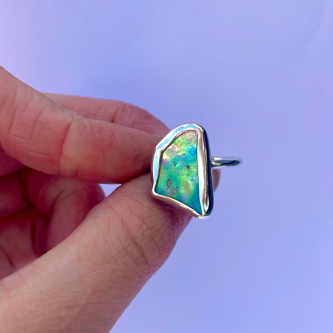 Natural paua shell from NZ set in 925 sterling silver