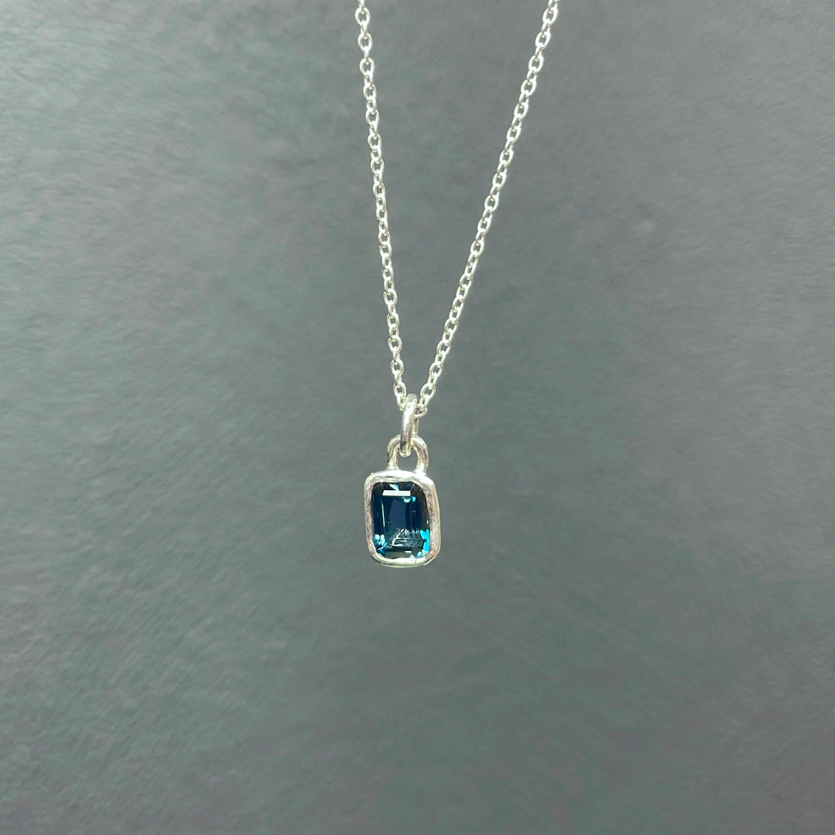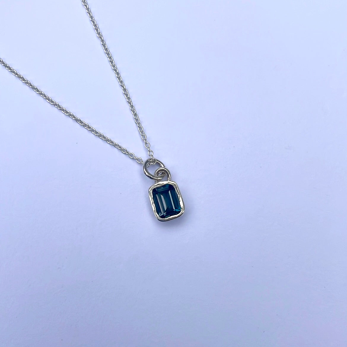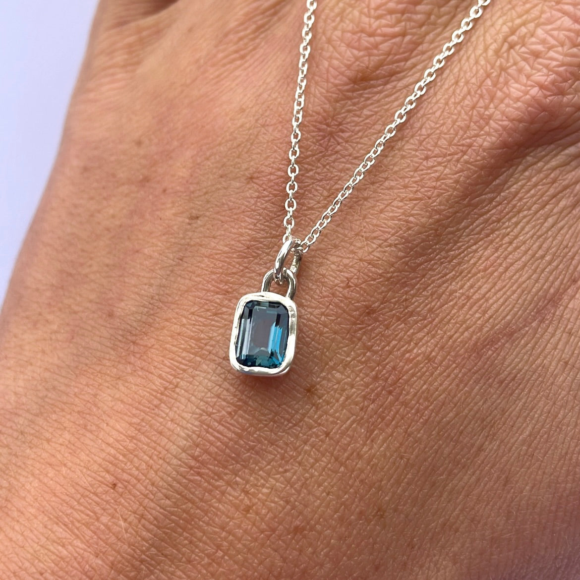 A 6x4mm emerald cut London Blue topaz set in 925 sterling silver.